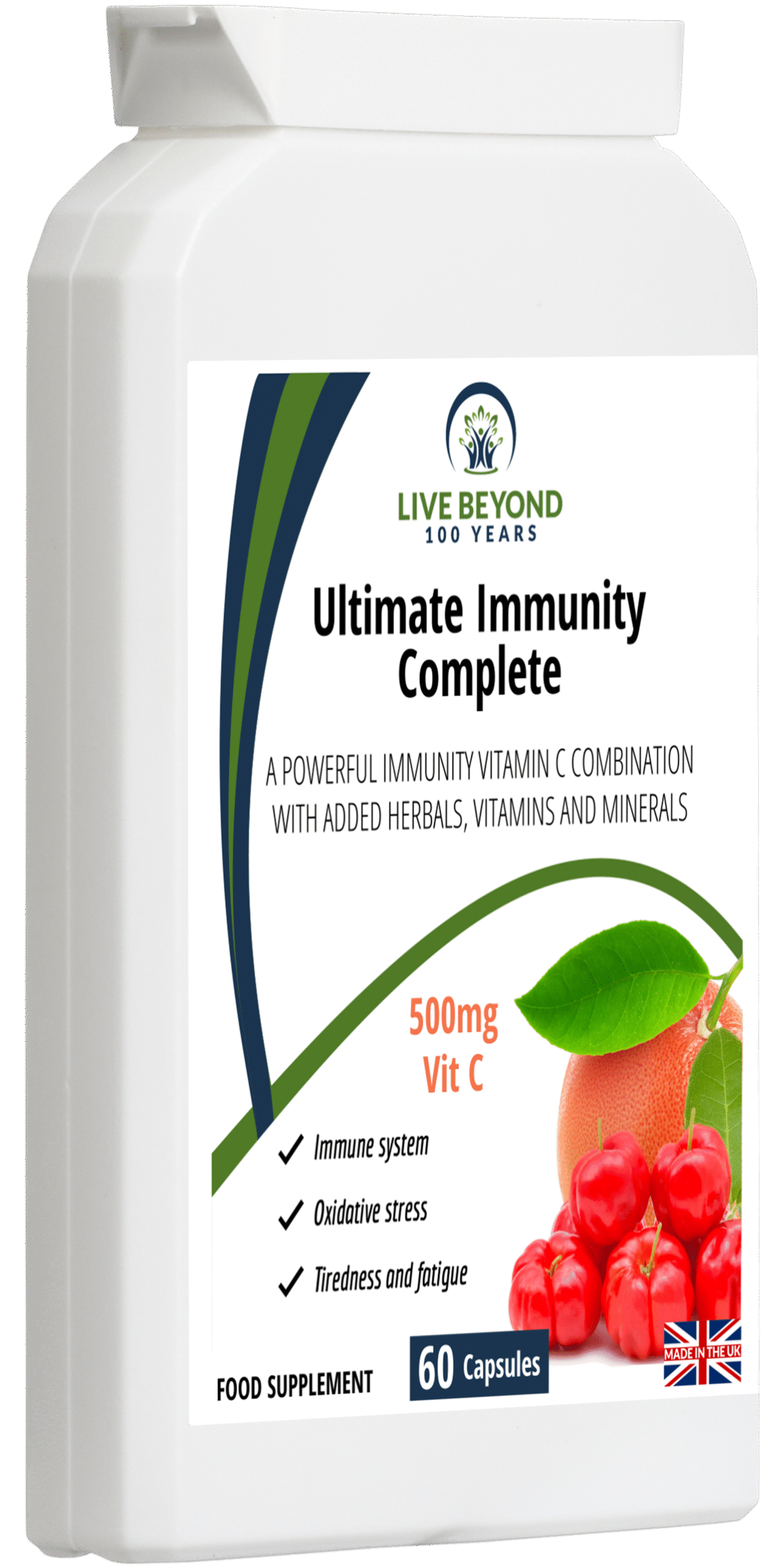 - Supports normal immune function with 500mg of Vitamin C